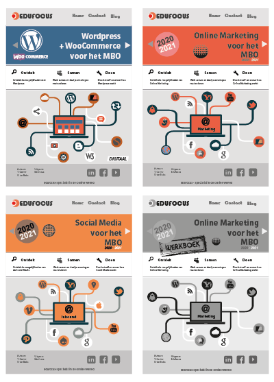 Wij bieden lesmethodes voor diverse MBO en HBO opleidingen. Kenmerkend hierbij zijn de actualiteit en compleetheid van het lesmateriaal, ontwikkeld in samenwerking met het onderwijs en bedrijfsleven. Met name E-commerce, Online Marketing en Social Media zijn dynamische vakgebieden die vragen om regelmatige updates van de lesmethodes. Op verschillende vakgebieden ondersteunen wij de docent en student.
