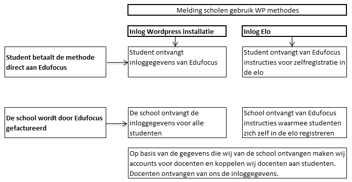 Na ontvangst van het meldformulier zorgen wij er voor dat de contact persoon voor aanvang van het schooljaar alle benodigde gegevens ontvangt. Dit betreft o.a. inloggegevens voor studenten informatie over toegang tot de Elo van Edufocus.