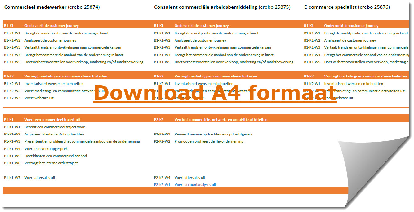 Voor de opleidingen binnen het domein commercie en retail hebben wij een overlapcheck uitgevoerd. Wij bieden voor beide domeinen een cross-reference aan met daarin de overeenkomsten en verschillen tussen de uitstroomprofielen. Deze documenten zijn vrijblijvend te downloaden.