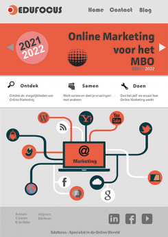 De lesmethode “Online Marketing voor het MBO” behandelt alle belangrijke aspecten van de Online Marketing en is sterk gericht op de praktijk in het beroepenveld. De verworven kennis uit dit lesmateriaal kan direct worden ingezet! Het theorieboek biedt extra verdieping voor zowel student als docent en geeft daardoor extra context en de mogelijkheid de lesprogrammering flexibel te maken. Onderaan deze pagina vind je een overzicht van de onderwerpen die aan bod komen. De methode bestaat uit de volgende onderdelen: