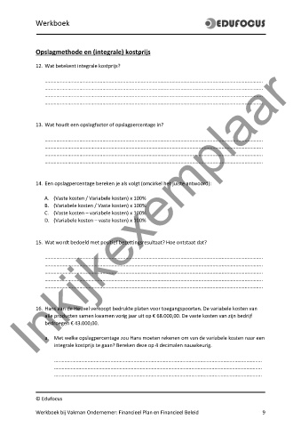Werkboek bij Vakman Ondernemer: Financieel Plan en Financieel Beleid 9