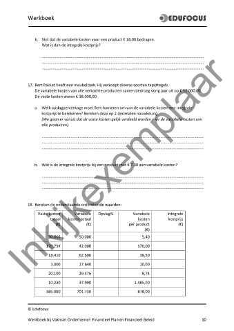 b. Stel dat de variabele kosten voor een product € 18,00 bedragen.
