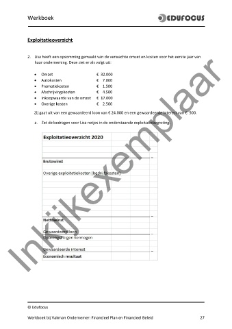 a. Zet de bedragen voor Lisa netjes in de onderstaande exploitatiebegroting.