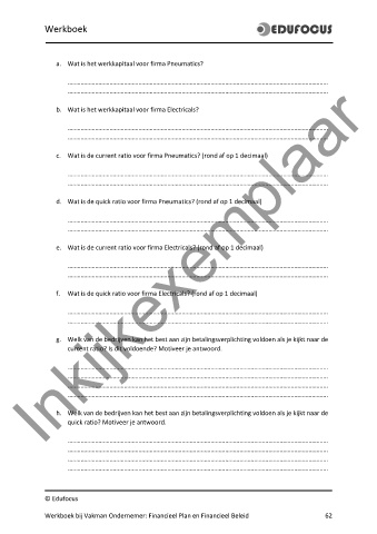 Werkboek bij Vakman Ondernemer: Financieel Plan en Financieel Beleid 62