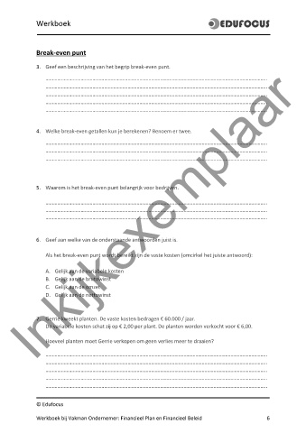 4. Welke break-even getallen kun je berekenen? Benoem er twee.