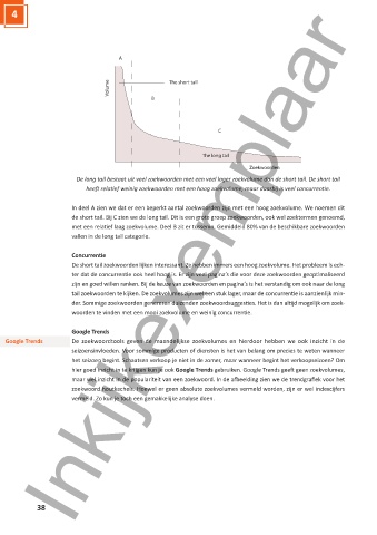 de short tail. Bij C zien we de long tail. Dit is een grote groep zoekwoorden, ook wel zoektermen genoemd,