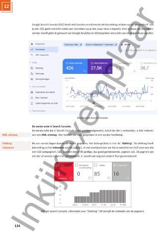 Indexeren betrekking op het indexeren van de pagina’s. In het voorbeeld zien we het screenshot van GCS voor een site