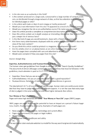 Expertise, Authoritativeness and Trustworthiness (E-A-T)