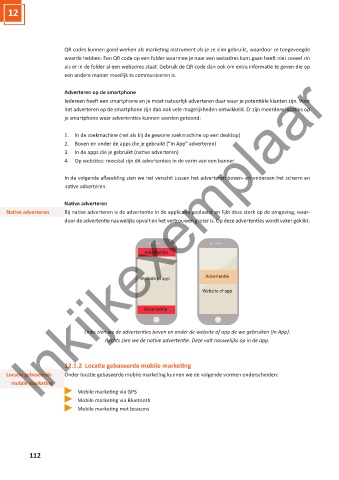 Native adverteren Bij native adverteren is de advertentie in de applicatie geplaatst en lijkt deze sterk op de omgeving, waar-
